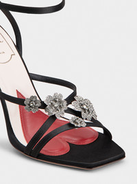 The Efflorescence sandals are embellished with iconic crystal flowers. Handcrafted in satin, with an ankle strap and the emblematic heart on the insole, this is a timeless style, for your most exclusive soirees. Description & details Silk blend satin Crystal flowers Ankle strap Leather insole with heart-shaped insert Leather outer sole Lacquered stiletto heel Heel height 3.9 ins Made in Italy Mod: RVW62241150RS0B999