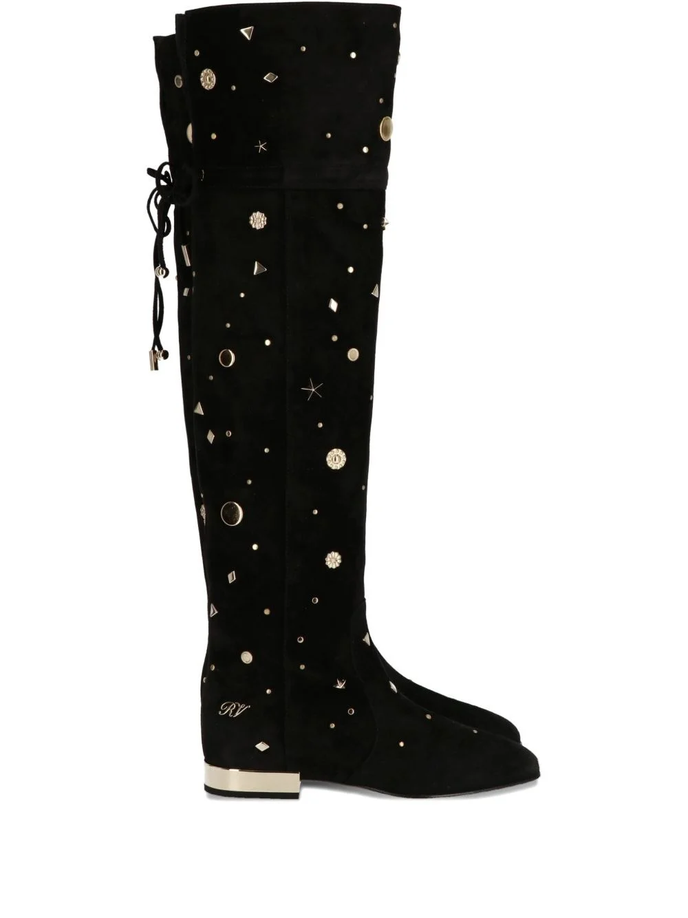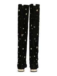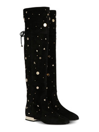 embellished knee-high boots Highlights - Black - Suede leather - Gold-tone embellishments - Flat heel - Lace-up detail Made in France Composition Outer: Brass 100%, Calf Suede 100% Lining: Calf Leather 100% Sole: Calf Leather 100%