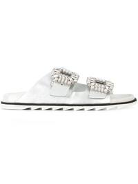 embellished sandals Silver toned leather embellished sandals from Roger Vivier. Made in Italy Composition Outer: glass 100%, Metal (Other) 100%, Calf Leather 100% Sole: Rubber 100% Lining: Calf Leather 100%