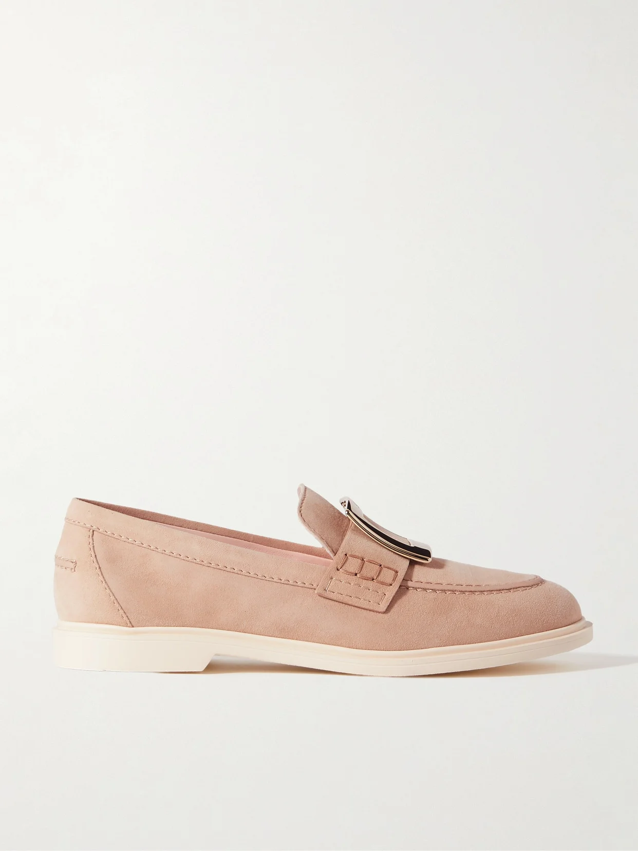 Roger Vivier has designed many iterations of its infamous buckle since its debut in 1965 - these loafers are topped with a sleek, minimal version. They're crafted from smooth suede with a classic almond toe and contrasting sole. Wear yours with denim and a statement sweater.