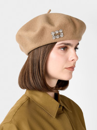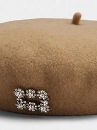 The Efflorescence buckle is characterized by shiny flowers made of crystals. This jewel with Rococo reminiscences adorns this beret in wool. A precious accessory that complements the urban look of the Vivier woman. FEATURES - Virgin wool - Crystal buckle - Metal RV logo - Made in Italy RQWH0121100URCC602