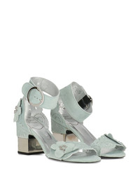 flower-embellished block-heel sandals Highlights - Pale blue - Suede leather - Laser-cut floral pattern - Flower embellishment - Ankle strap - Block heel Made in Italy Composition Outer: Calf Suede 100% Lining: Calf Leather 100% Sole: Calf Leather 100%