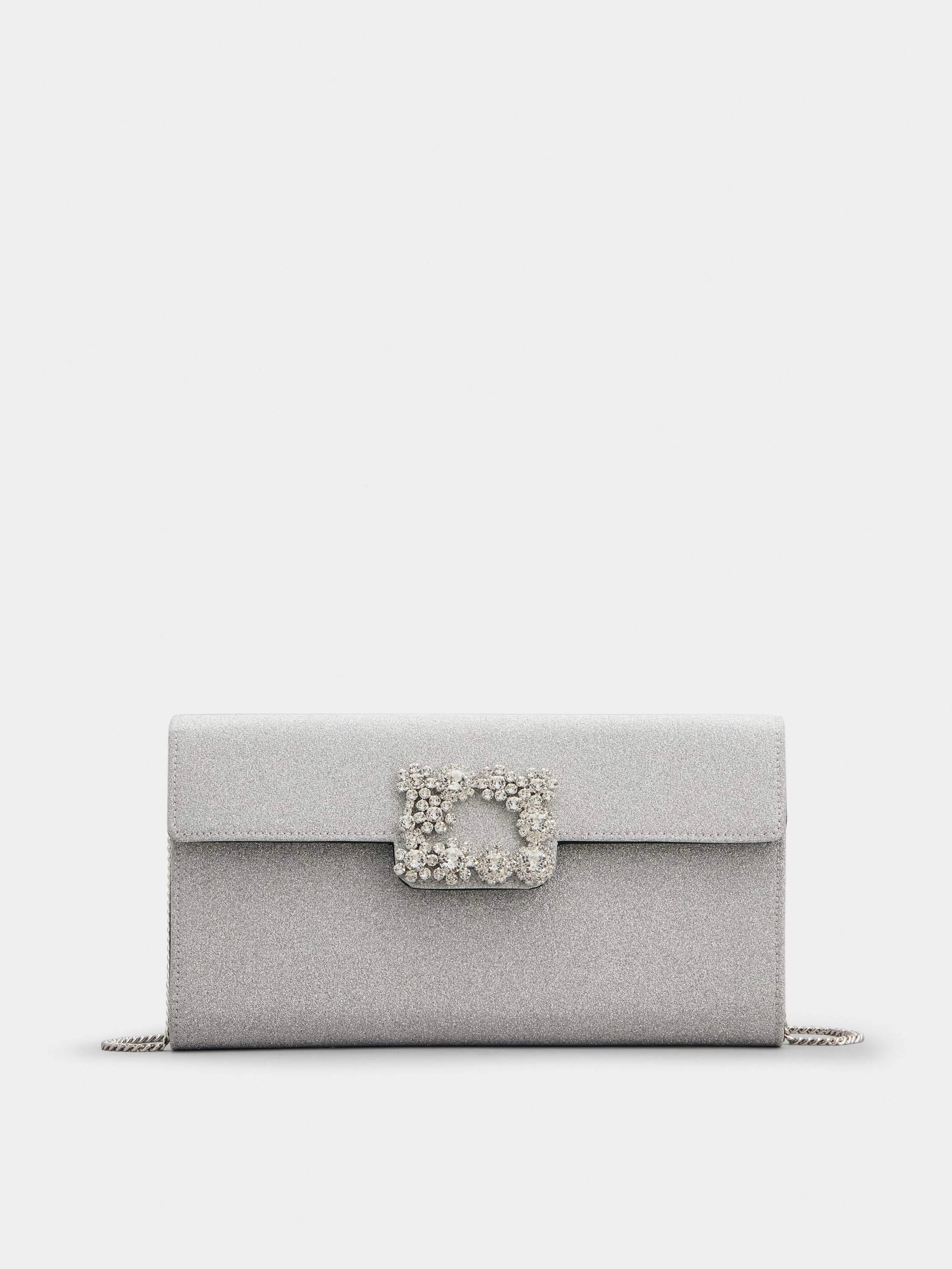 Clutch bag with a sparkling, glitter-finish and the Maison's Buckle, crafted from precious, crystal flowers. Precious and elegant, perfect for a grand occasion. Description & details Made in Italy Item crafted in glitter Satin interior Flower Strass Buckle in crystals Dimensions: 9.5 x 5.2 x 1.4 ins, metal chain strap Maintenance and care cards included Branded dustbag Mod: RBWAMFD0200JQO1920