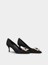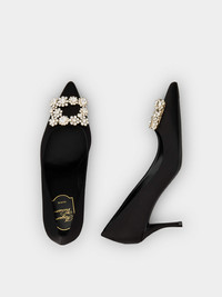 Characterized by a refined crystal buckle, the Efflorescence pumps are handcrafted in satin. Here with a slim high heel, they are a timeless choice for an evening look. FEATURES - Silk blend satin - Crystal buckle - Leather insole - Sin heel 2.6 ins approx - Leather outer sole RVW41417620RS0B999