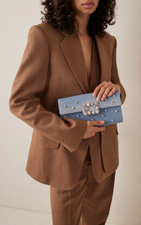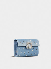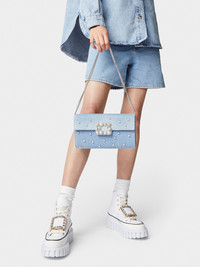 Characterized by a crystal and bead buckle, recalled by the decorations on the front, the Flower Strass Pearl Buckle Clutch Bag is crafted in washed denim. Featuring a concealed shoulder strap in metal, it combines timeless aesthetics with contemporary glam. Description & details Made in Italy Item crafted in cotton Bead and crystal decorations Crystal and bead buckle Magnetic button closure Fabric interior Internal pocket Dimensions: 9.4 x 5.1 x 1.4 ins, metal shoulder strap Maintenance and care cards included Branded dustbag Mod: RBWAMFDB202JDLU207