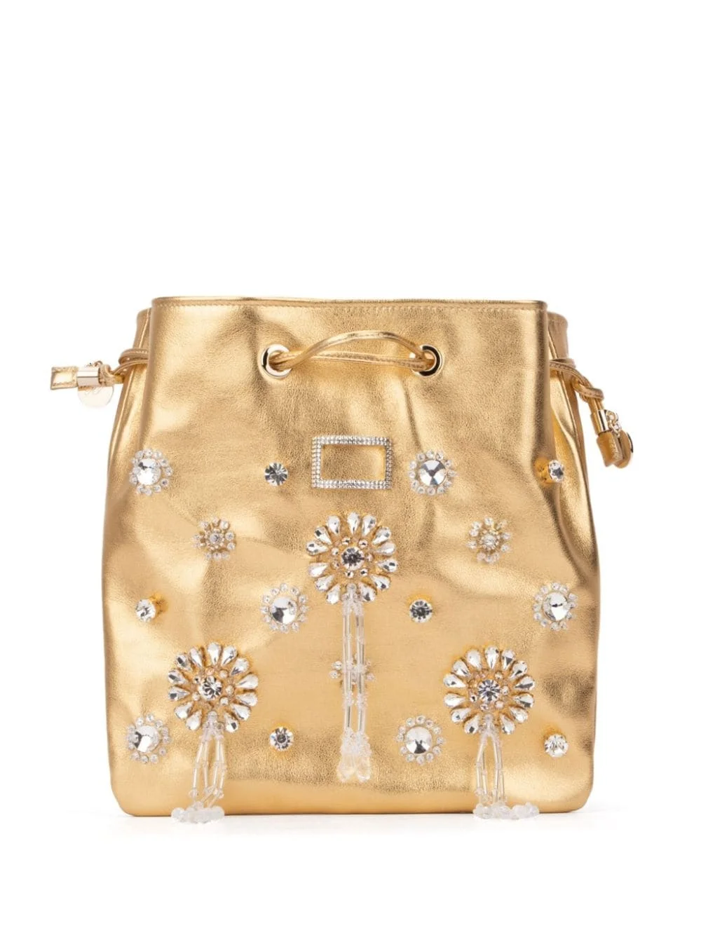 crystal-embellished bucket bag Highlights - Gold-tone - Leather - Crystal embellishment - Main compartment - Adjustable fit - Rear patch pocket Made in Italy Composition Outer: Leather 100%