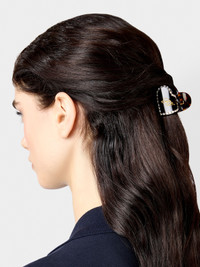 Inspired by an emblem dear to the Maison, this hair clamp is crafted in resin tortoise effect, with RV logo. Embellished with crystal on the edge, it adds a precious touch to your everyday hairstyle. FEATURES - Dimensions: L 1.6 x H 2 x D 1.6 ins - Acetate - Crystals REWAC930200T7BTART
