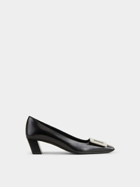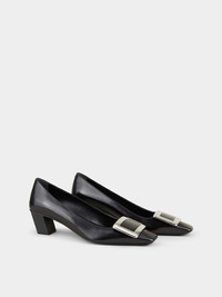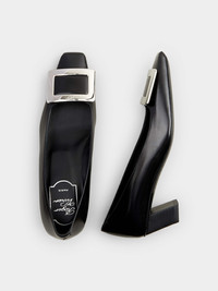 Belle Vivier Metal Buckle Pumps in Leather