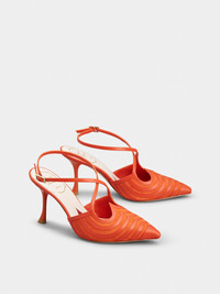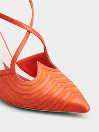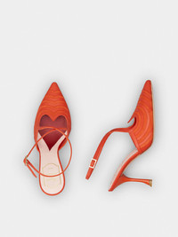 The I Love Vivier collection, celebrating the theme of love, takes on an optical style, with psychedelic designs inspired by the 1960s. Crafted in smooth leather and suede at our ateliers, these slingback pumps come with a heel strap that sinuously crosses over the front. The heart-shaped silhouette peeks out from the insole and defines the outline of the top edge. With their elegant and distinctive silhouette, they express a contemporary allure, under the sign of joie de vivre. Description & details Smooth leather Suede inserts Heel strap Leather insole with heart-shaped insert Leather outer sole Lacquered stiletto heel Heel height 3.3 ins Made in Italy Mod: RVW53040690JPEG842