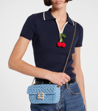 Crafted in Italy from raffia, the Jeu De Fille shoulder bag from Roger Vivier is embellished with an iconic crystal buckle. This design comes with a metal chain strap. Product Details - Material: raffia - Lining: leather - Made in Italy - Designer color name: Celeste+ Oro - Item color: blue - Contains non-textile parts of animal origin - Internal details: Card slots - Closure: magnetic-tab fastening - Chain and leather shoulder strap - Hardware color: gold - Item number: P01059324 Size & Fit - Height 10cm-4" - Width 20cm-8" - Depth 5cm-2" - Chain length 111cm-43.5"