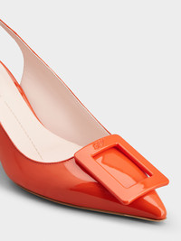 Virgule Lacquered Buckle Slingback Pumps in Patent Leather