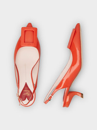 One of Monsieur Vivier’s most iconic heel inventions, the Virgule created in 1963, imitates the shape of its namesake with a pronounced curve that rolls under the foot. This season, this emblematic shape comes back in the Virgule Lacquered Buckle Slingback Pump, finely hand crafted in patent leather with a lacquered buckle and the distinct heel. Description & details Made in Italy Patent leather upper Tapered toe Lacquered buckle Heel strap Leather insole with heart-shaped insert Lacquered Virgule heel 2.2 ins Leather outsole Maintenance and care cards included Branded dustbag Mod: RVW63831440D1PG842
