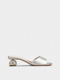 Featuring a boule heel adorned with crystals and an insole with the emblematic heart, these mules in metallic nappa leather combine comfort and elegance. They accompany you all day long with their feminine and sophisticated style. Description & details Ovine nappa leather Leather insole with heart-shaped insert Leather outer sole Crystal heel Made in Italy Mod: RVW76241510KACB200