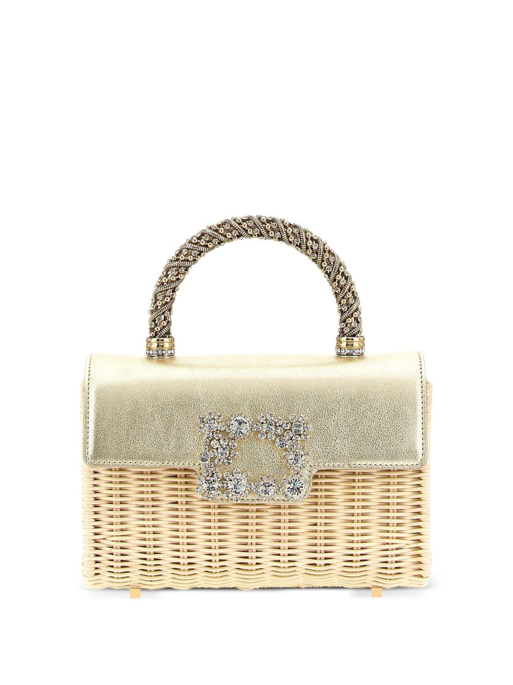 mini Jewel Efflorescence tote bag Highlights - Beige - Single top handle - Detachable chain-link shoulder strap - Foldover top with magnetic fastening - Main compartment Made in Italy Composition Outer: Raffia 100%, Calf Leather 100% Lining: Calf Leather 100% SIZE & FIT Measurement DEPTH 2.36 in(6 cm) HEIGHT 4.72 in(12 cm) WIDTH 7.48 in(19 cm)