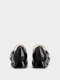 Inspired by the Belle Vivier, the Très Vivier collection is now an icon on its own. Crafted in a shiny patent leather, the Très Vivier Strass Buckle Mini Babies Ballerinas come with two straps embellished with two crystal mini buckles. Sophisticated and comfortable at once, thanks to the geometric heel with Sixties reminiscences. Description & details Made in Italy Patent leather upper Rounded toe Double strap closure Crystal mini buckles Heel 1 in Leather outsole Maintenance and care cards included Branded dustbag Mod: RVW54035690D1PB999