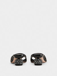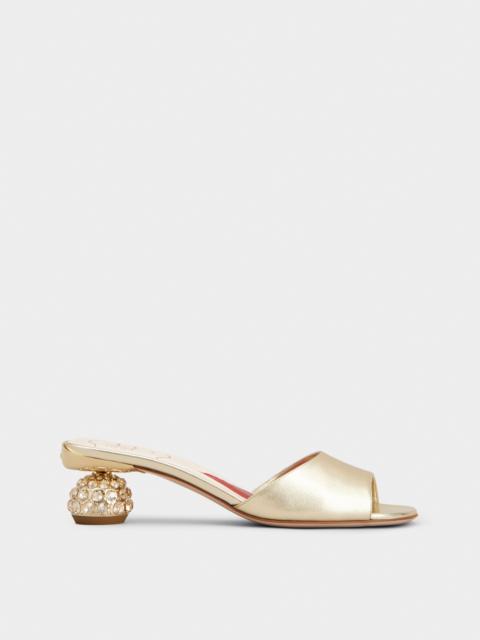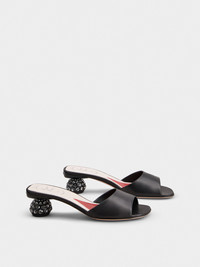 Featuring a boule heel adorned with crystals and an insole with the emblematic heart, these mules in nappa leather combine comfort and elegance. They accompany you all day long with their feminine and sophisticated style. Description & details Ovine nappa leather Leather insole with heart-shaped insert Leather outer sole Crystal heel Made in Italy Mod: RVW7624151091TB999