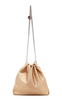 PRODUCT DETAILS - Mini pouch bag silhouette, strass-embellished satin body, strass buckle detail, removable chain strap, lined - Drawstring fastening - Composition: satin, strass - Made in Italy SIZE & FIT - This item measures approximately 21 x 23 x 5 cm