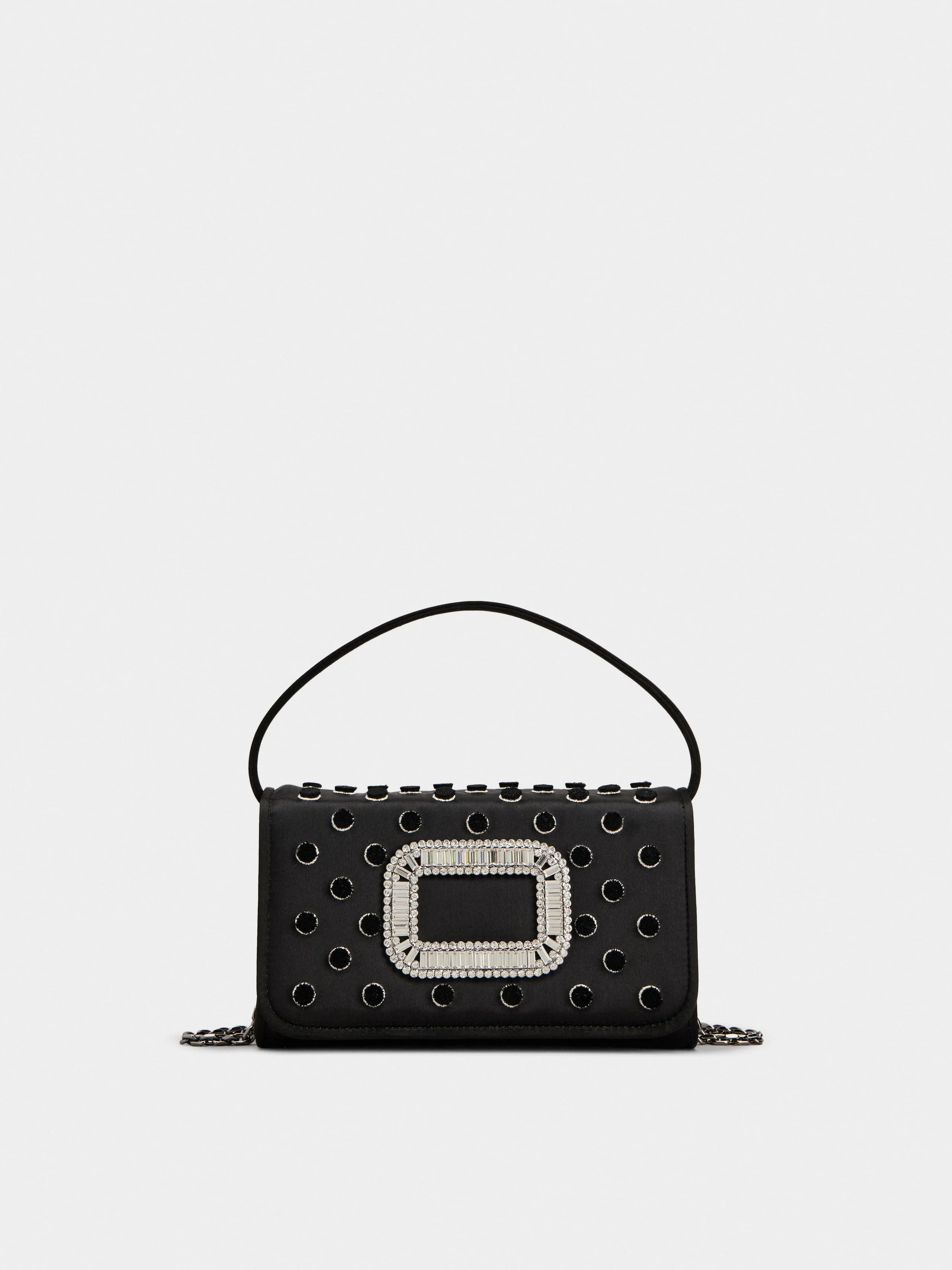 The iconic Pilgrim buckle is adorned with baguette crystals that give it all its sparkle. The crystals are applied by hand, using a high jewelry technique. Crafted in satin with a removable metal chain, this micro bag is characterized by velvet polka dots. A bag ensuring elegance for any occasion. Description & details Dimensions: L 7.1 ins x H 4.1 ins x D 2.4 ins Silk blend satin Fixed handle Removable metal chain Velvet and lurex polka dots Crystal buckle Magnetic button closure Satin lining Internal pocket Made in Italy Mod: RBWABDH5000RS0B999