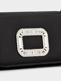 The iconic Pilgrim buckle is adorned with baguette crystals that give it all its sparkle. The crystals are applied by hand, using a high jewelry technique. This micro bag in satin, with a removable metal chain, ensures elegance for any occasion. Description & details Dimensions: L 7.1 ins x H 4.1 ins x D 2.4 ins Silk blend satin Fixed handle Removable metal chain Crystal buckle Magnetic button closure Internal pocket Made in Italy Mod: RBWABDH0000RS0B999