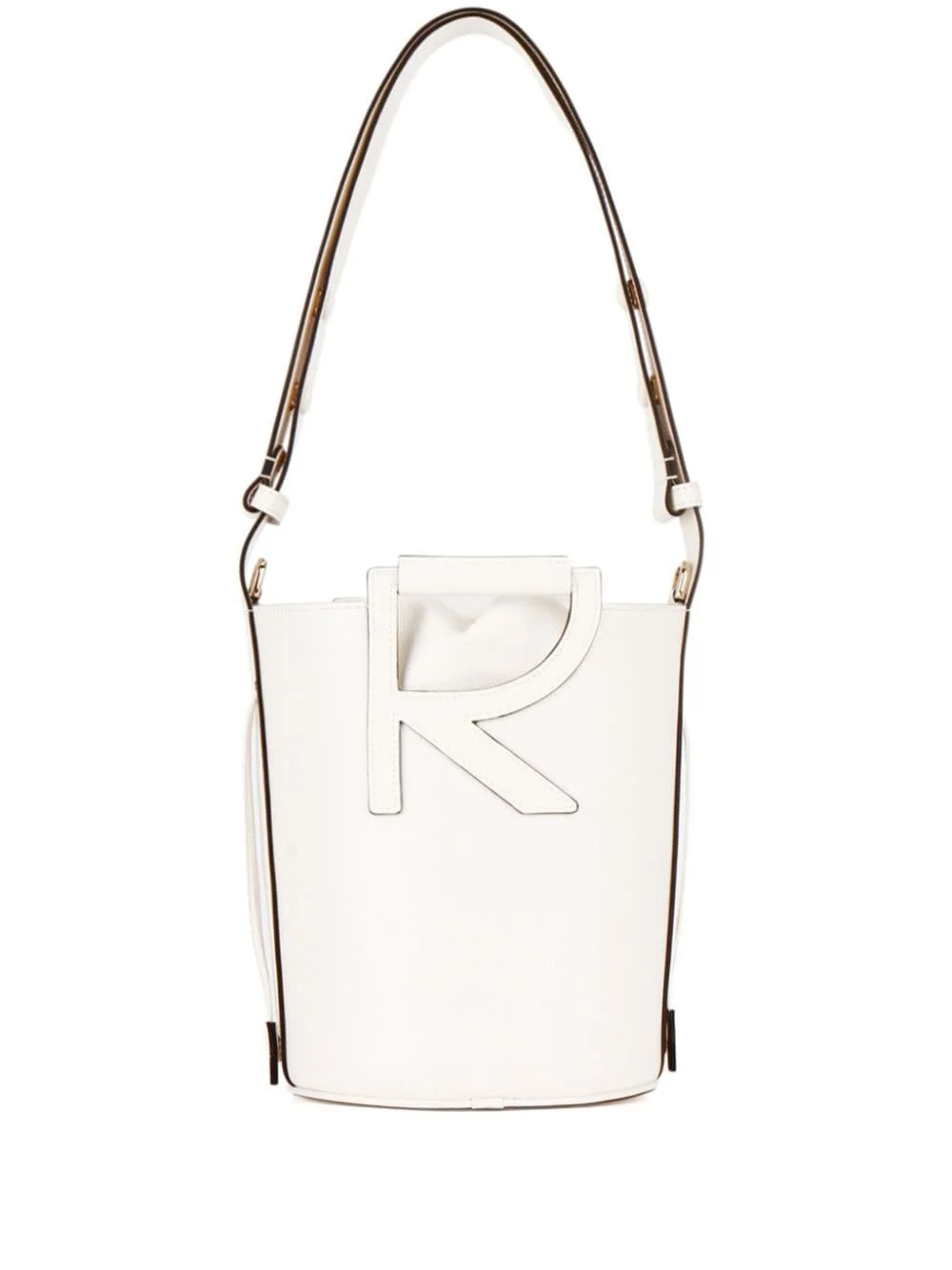 leather bucket bag Highlights - White - Calf leather - Smooth grain - Open top - Adjustable shoulder strap - Two top handles - Cut-out detailing - Bucket body - Main compartment Made in Italy Composition Outer: Calf Leather 100% SIZE & FIT Measurement DEPTH 5.9 in(15 cm) HANDLE 7.08 in(18 cm) HEIGHT 9.44 in(24 cm) WIDTH 9.25 in(23.5 cm)
