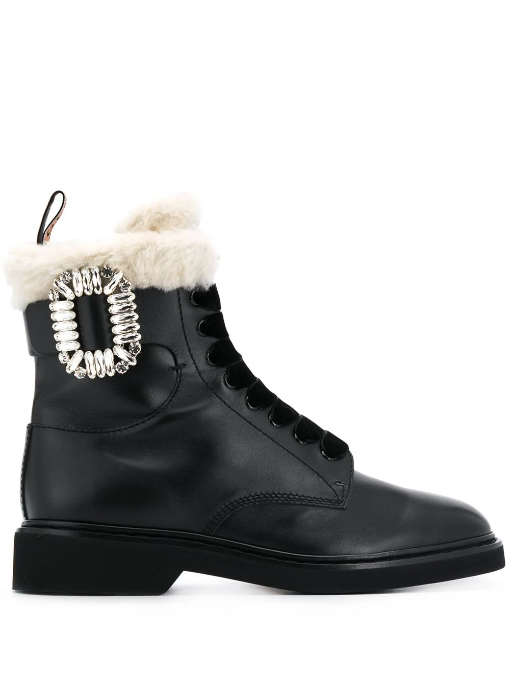 Viv' Rangers Fur ankle boots Black leather Viv' Rangers Fur ankle boots from Roger Vivier featuring a faux fur trim, a round toe, a lace-up front fastening, a pull tab at the rear, an enamel buckle, a rubber sole and a side zip fastening. Made in Italy Composition Outer: Calf Leather 100% Sole: Rubber 100% Lining: Sheep Skin/Shearling 100% SIZE & FIT Measurement HEEL 1.37 in(3.5 cm) HEIGHT 6.29 in(16 cm) Sole height 0.59 in(1.5 cm)