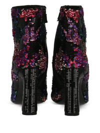 100mm sequin floral boots Highlights - Black - Sequin embellishment - Floral pattern - Block heel - Ankle height - Zip fastening Made in Italy Composition Lining: Calf Leather 100% Sole: Calf Leather 100% Outer: Sequin 100% SIZE & FIT Measurement HEEL 3.93 in(10 cm)