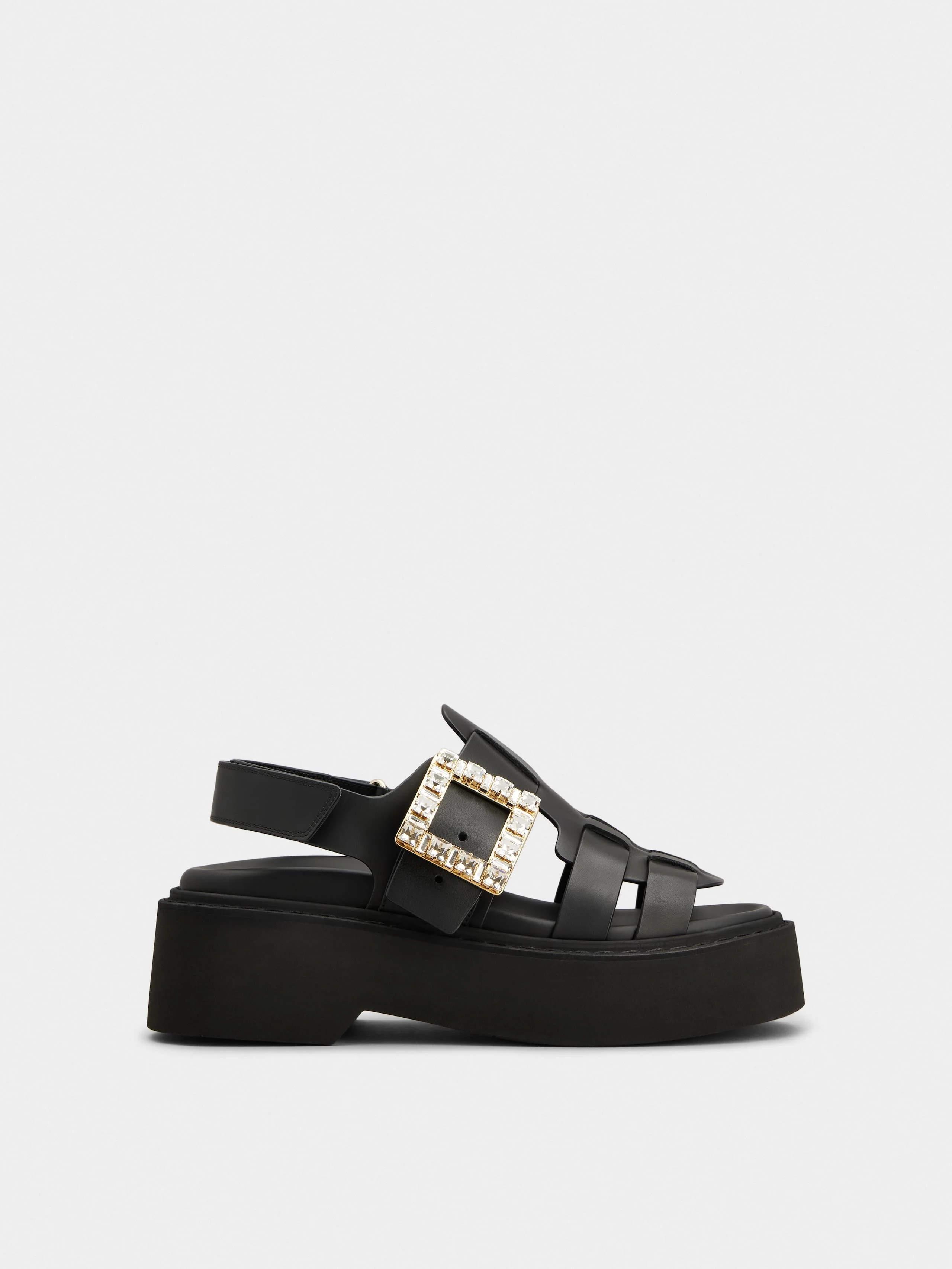 The Maison interprets the urban style with the Viv' Rangers collection. Crafted in leather, these sandals with high outer sole are adorned by the iconic crystal buckle. Sophisticated and comfortable at once. Description & details Calfskin leather Crystal buckle Heel strap with velcro Leather insole Rubber platform outer sole Made in Italy Mod: RVW76942250D90B999