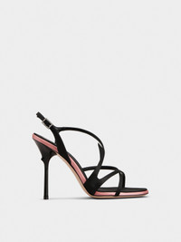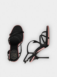 Delicate yet bold, romantic yet proud, the rose embodies femininity. Born in 1965, a symbol dear to Monsieur Vivier, it is reborn in a revisited thorn heel and refined floral embellishments: sculpted rosebuds and twisted volutes. The Rose Vivier is one of the House's most bewitching emblems. Characterized by an alluring lacquered heel, these sandals are crafted in satin, with an heel strap. FEATURES - Silk blend satin - Heel strap - Satin insole - Leather outer sole - Lacquered heel - Heel height 3.9 ins - Made in Italy RVW79743720RS0B999