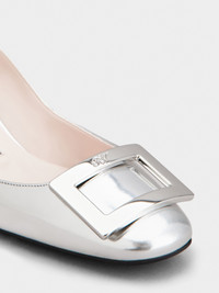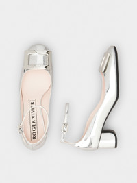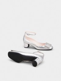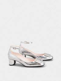 These pumps feature the iconic lacquered buckle and a rubber outer sole. Crafted in mirror effect leather with an ankle strap, they combine comfort and femininity, with a distinctive Vivier touch. Description & details Calfskin leather Mirror effect finishing Lacquered buckle Leather insole Rubber outer sole Covered heel Heel height 1.8 ins Made in Italy Mod: RVW76141300XREB200