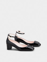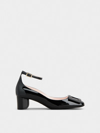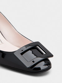 These pumps feature an iconic lacquered buckle and rubber outer sole. Crafted in patent leather with an ankle strap, they combine comfort and femininity, with a distinctive Vivier touch. Description & details Patent calfskin leather Lacquered buckle Leather insole Rubber outer sole Covered heel Heel height 1.8 ins Made in Italy Mod: RVW76141300D1PB999