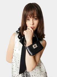 With an attitude as feminine and delicate as the name it bears, the Nightlily line is an expression of extremely refined glam. The RV Nightlily Charm Micro Bag comes with the Broche Vivier mini buckle in crystals. Crafted in nappa leather, it features a handle that turns into a wristlet, thanks to the branded snap hook that attaches to the zip pull. Description & details Made in Italy Item crafted in nappa leather Crystal buckle Zip closure Rhinestone mini buckle zip pull Fabric interior Dimensions: 4.9 x 3 x 2.2 ins, leather handle/wristlet Maintenance and care cards included Branded dustbag Mod: RAWAWEX0200JXVB999