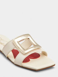 The Viv' Choc buckle, with its distinctive rounded shape, adorns these mules in leather with leather outer sole. Characterized by a squared toe, this versatile summer creation is complemented by the emblematic heart-shaped insole. Description & details Calfskin leather Metal buckle Leather insole with heart-shaped insert Leather outer sole Made in Italy Mod: RVW74738070BSSC019