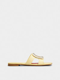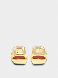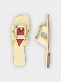 The Viv' Choc buckle, with its distinctive rounded shape, adorns these mules in leather with leather outer sole. Characterized by a squared toe, this versatile summer creation is complemented by the emblematic heart-shaped insole. Description & details Calfskin leather Metal buckle Leather insole with heart-shaped insert Leather outer sole Made in Italy Mod: RVW74738070BSSG020