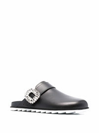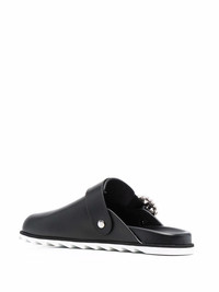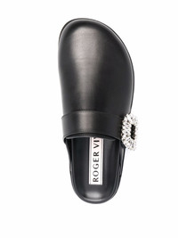 Slidy Viv crystal-buckle mules black leather grained texture crystal buckle detail round toe branded leather insole slip-on style rubber outsole Made in Italy Composition Sole: Rubber 100% Outer: Leather 100% Lining: Leather 100% SIZE & FIT Measurement HEEL 0.98 in(2.5 cm) Sole height 0.78 in(2 cm)
