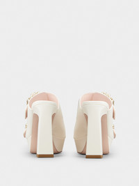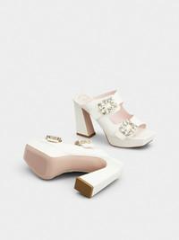 Crafted in soft nappa leather with platform and trapeze heel, these mules are characterized by shiny mini buckles. Composed of crystals in different sizes, these enchanting buckles with a floral shape feature elements recalling the shape of a lemon. A feminine and versatile style, expression of refined contemporary elegance. Description & details Made in Italy Nappa leather upper Squared toe Crystal buckle Leather insole Trapeze heel 3.9 ins Leather outsole Maintenance and care cards included Branded dustbag included Mod: RVW6993510091TC019