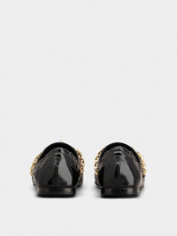 Crafted in patent leather with elastic piping, these slippers are characterized by branded charms, that tell the story of the Maison. Perfect for running between a thousand appointments without sacrificing sophisticated femininity. FEATURES - Patent calfskin leather - Front chain with charms - Crystal detailing - Elastic piping - Leather lining and insole - Leather outer sole - Made in Italy RVW74343540TM6B999