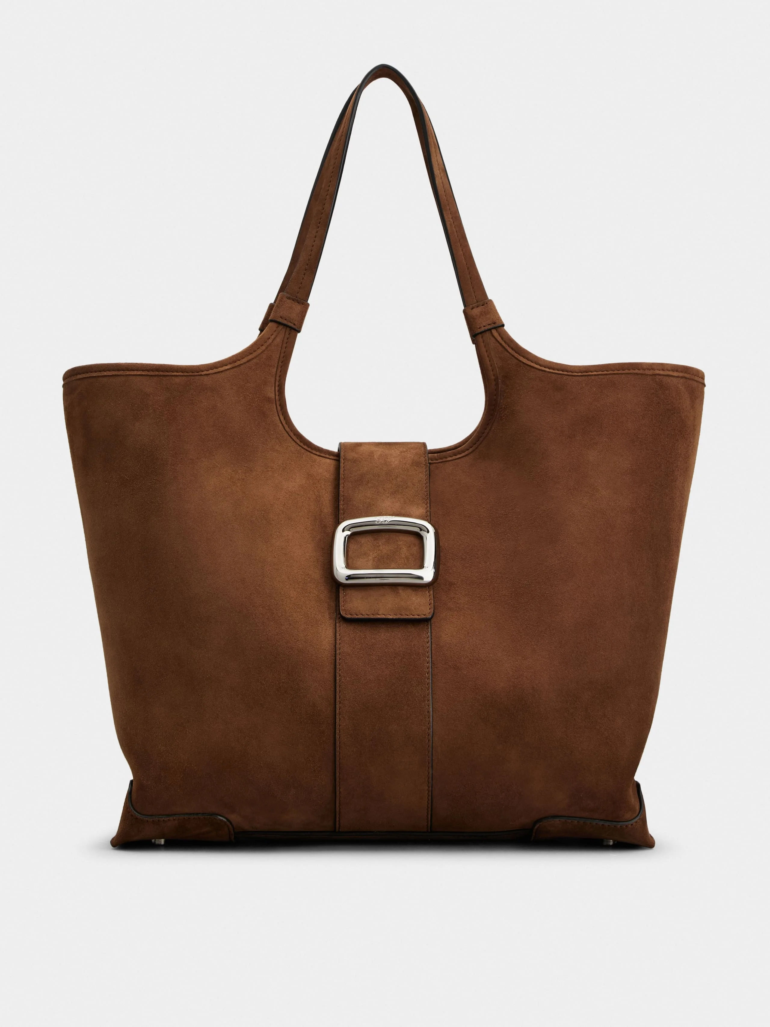 Characterized by the metal buckle with its distinctive rounded shape, the Viv' Choc shopping bag comes here crafted in suede. Featuring a wide compartment, it comes with two practical handles. Elegant and functional at once, it is the perfect ally of the metropolitan Vivier woman. Description & details Dimensions: L 15.7 x H 11.4 x D 5.5 ins Goatskin suede Fixed handles Metal buckle Strap and magnet closure Adjustable compartment with central strap Internal pocket Branded metal feet Made in Italy Mod: RBWAOGAB300HR0S604