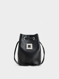 Reminiscent of the Sixties, the Tres Vivier buckle has become an icon. Composed of square crystals, it is the final touch on this mini bucket bag in leather. The practical drawstring can be used to carry the bag by hand or over the shoulder, while the metal shoulder strap allows it to be worn crossbody. A bag that is practical and elegant at once. FEATURES - Dimensions: L 6.7 ins x H 6.7 ins x D 4.1 ins - Calfskin leather - Metal chain with adjustable leather insert - Crystal buckle - Drawstring closure - Fabric lining - Internal pocket - Metal feet - Made in Italy RBWANME0100XMAB999