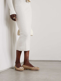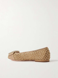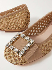 Très Vivier crystal-embellished grosgrain-trimmed raffia ballet flats