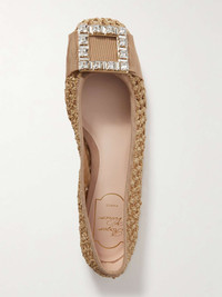 EDITORS'NOTES Roger Vivier's 'Très Vivier' ballet flats are such a glamorous choice for warmer days. They're woven from lightweight raffia and have tonal grosgrain trims. The round toe is topped with the label's signature crystal-embellished buckle, which will sparkle prettily in the summer sun. SIZE & FIT - Fits large to size, take a half size smaller than normal - Italian sizing DETAILS & CARE - Heel measures approximately 10mm/ 0.5 inches - Beige raffia and grosgrain - Slip on Large to size. See Size & Fit notes.