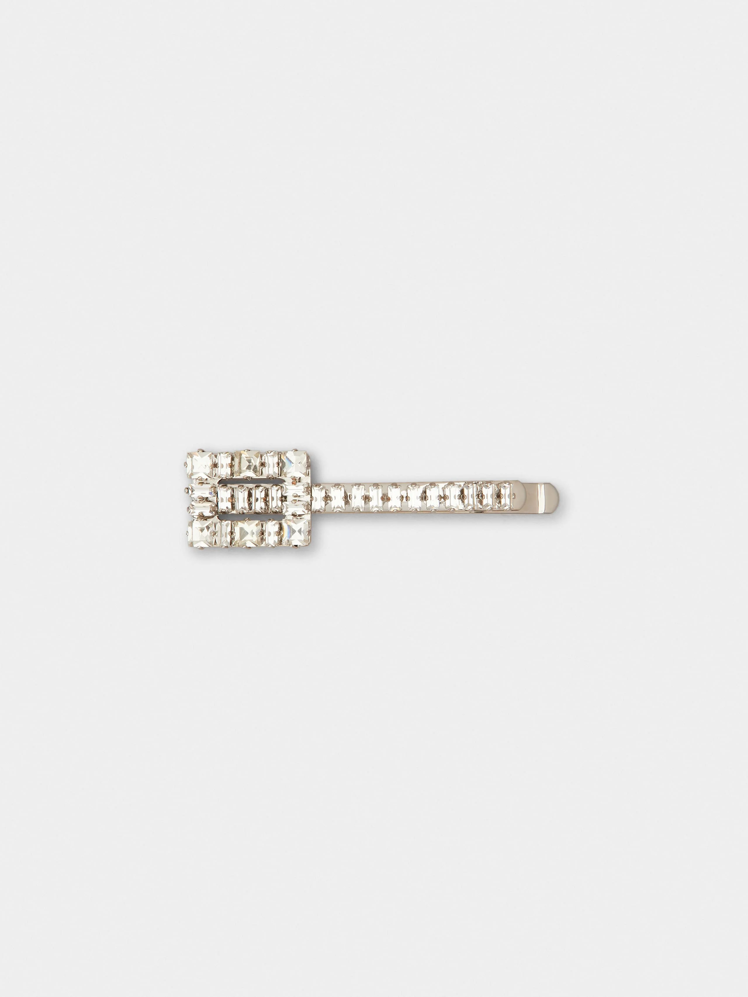 Reminiscent of the Sixties, the Tres Vivier buckle has become an icon. Composed of square crystals, it characterizes this versatile hair clip. A precious touch to your hairstyle. Description & details Dimensions: 2.8 x 0.8 x 0.2 ins Hypoallergenic metal and crystals Made in Italy Mod: REWAC830100AGKB200