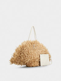Reminiscent of the Sixties, the Tres Vivier buckle has become an icon. Composed of square crystals, it signs this roomy shopping bag in fringed raffia, hand-woven. Obtained by folding a wide-brimmed hat, this two-handled style is worn over the shoulder and comes with an internal leather pouch. Description & details Dimensions: L 29.5 ins x H 15.7 ins x D 11.8 ins Raffia Crystal buckle Leather handles Removable internal pouch in leather Made in Italy Mod: RBWAOKK0300UDI1K58