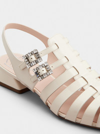 Reminiscent of the Sixties, the Tres Vivier style has become an icon, sophisticated and comfortable at once thanks to the geometric heel. Crafted in patent leather, these strappy sandals feature two mini crystal buckles. Description & details Patent calfskin leather Mini crystal buckles Leather insole Leather outer sole Geometric heel Heel height 1 in Made in Italy Mod: RVW54041740D1PC019