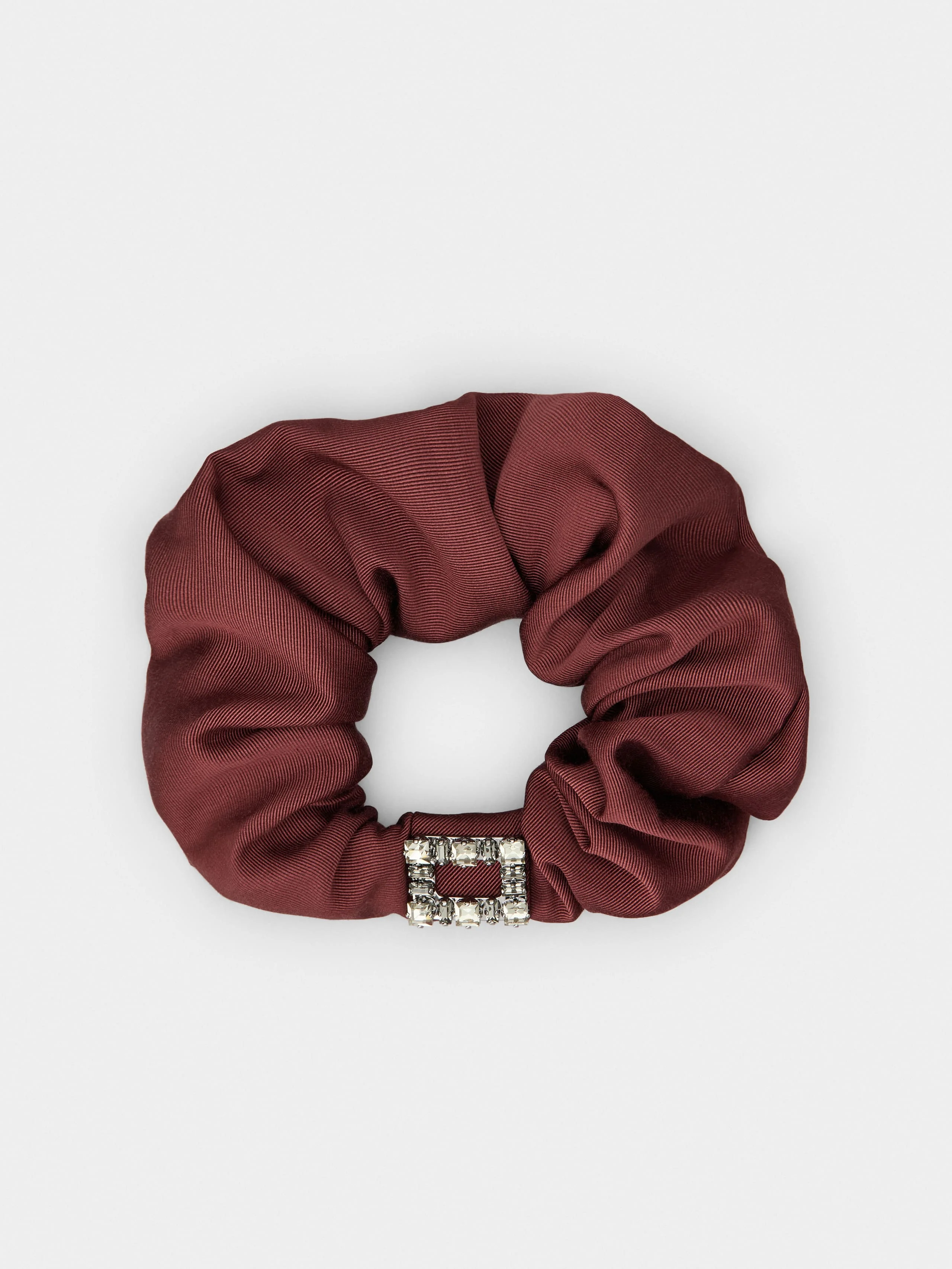 Reminiscent of the Sixties, the Tres Vivier buckle has become an icon. Composed of square crystals, it is the centerpiece of this scrunchie elastic in grosgrain. A precious touch to your hairstyle. Description & details Fabric Crystal buckles Made in Italy Mod: REWAC7000006N1R810