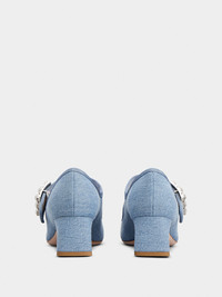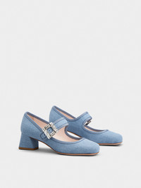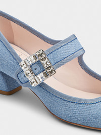 Très Vivier Strass Buckle Babies Pumps in Denim
