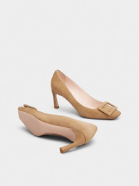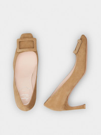 Inspired by the emblematic Belle Vivier buckle, these pumps feature a Trompette heel, with a slightly flared curved shape. Handcrafted in suede, they are the ally of an elegant and contemporary femininity. FEATURES - Goatskin suede - Covered buckle - Leather insole - Leather outer sole - Covered Trompette heel - Heel height 2.8 ins - Made in Italy RVW40026800HR0S812
