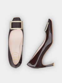 Pumps in patent leather featuring a metal buckle. The classic yet innovative design of the curved Trompette heel lends a timeless allure to the Belle Vivier. Description & details Made in Italy Patent leather upper Squared toe Metal buckle Heel 7 cm Leather outsole Care and maintenance instructions included Branded dustbag Mod: RVW40015280D1PL811