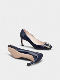 Pumps in patent leather featuring a metal buckle. The classic yet innovative design of the curved Trompette heel lends a timeless allure to the Belle Vivier. Description & details Made in Italy Patent leather upper Squared toe Metal buckle Heel 7 cm Leather outsole Care and maintenance instructions included Branded dustbag Mod: RVW40015280D1P9997
