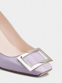 Pumps in patent leather featuring a metal buckle. The classic yet innovative design of the curved Trompette heel lends a timeless allure to the Belle Vivier. Description & details Made in Italy Patent leather upper Squared toe Metal buckle Heel 7 cm Leather outsole Care and maintenance instructions included Branded dustbag Mod: RVW40015280D1PL028