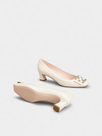Characterized by a Trompette heel, with the iconic curved shape, these pumps feature a woven buckle. Handcrafted in leather, they are the ally of elegant femininity and accompany you throughout the day without sacrificing comfort. Description & details Calfskin leather Metal and leather buckle Leather insole Leather outer sole Covered Trompette heel Heel height 1.8 ins Made in Italy Mod: RVW44840940BSSC019